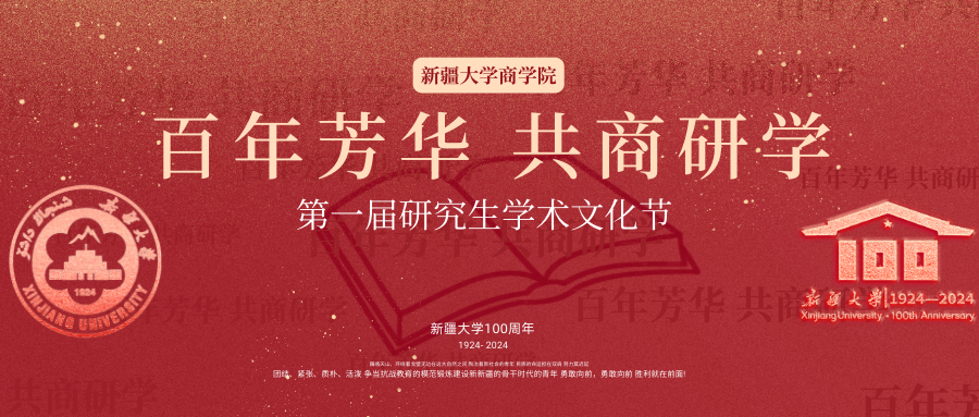 为深入学习贯彻落实全国研究生教育会议精神,积极探索符合我院研究生特点的校园学术文化建设新途径,打造体现研究生特点和学校特色的研究生学术文化品牌,我院特于2024年3月中旬至5月中旬,举办新疆大学商学院第一届“百年芳华 共商研学”研究生学术文化节,2024年将成为我院学术文化年,并以此献礼百年新大。