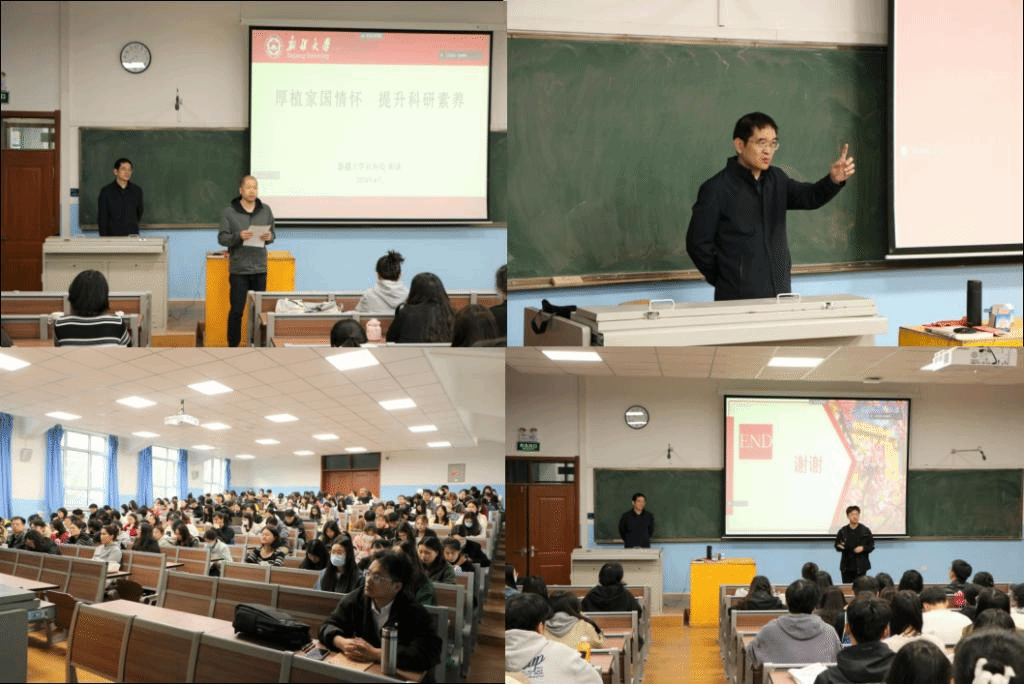 和谈教授以习近平总书记三次发言探讨家国情怀,强调其为中华传统的核心,也是坚持和完善中国特色社会主义的不可或缺的精神动力。他引用《大学》中的经典文段:“大学之道,在明明德,在亲民,在止于至善。”教导学生们要树立光明正大的品德,摒弃浮华追求,追求内心的完美。随后,他以韩愈、朱云、林则徐、文天祥等历史英雄为例,赞美他们为国家和人民利益奋斗,彰显了超越生死的崇高品质。并警示学生们不要追逐物质和虚名,而要铭记读书人的家国情怀。最后,和谈教授呼吁作为研究生的同学们,要学会自主学习,勤奋钻研,不松懈于自我要求,培养审慎的科研态度、自律的科研管理、坚定的科研热情,掌握论文构建技巧,提升写作表达水平,注重行文规范。同时,他鼓励大家积极融入社会,实地调研,向身边优秀的老师和同学学习。
