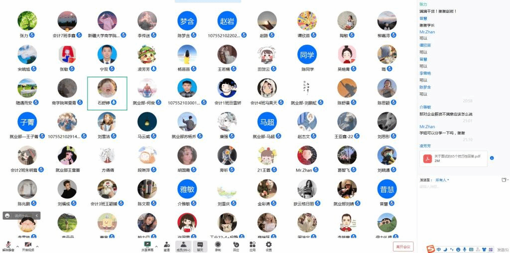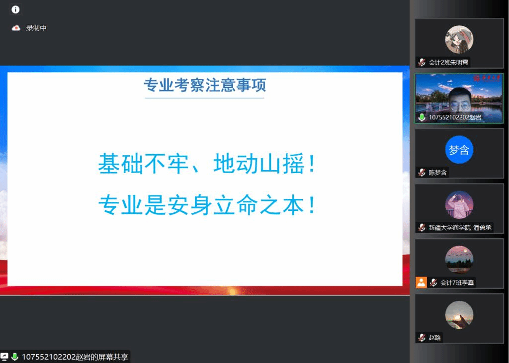 会议伊始,潘勇承老师对参会同学作了开场讲话。潘老师提到,一份适合自己的工作是每个人的追求,而解决如何找到一份适合自己的工作并抓住这份工作是本次活动的目的,希望通过本次活动分享能增长同学们求职相关的经验。同时,他希望同学们通过吸取的宝贵经验来化劣势为优势,明确就业方向,端正就业态度,实现先就业、再择业。最后,他祝愿同学们找到适合自己的工作,为推动全面实现新疆大学商学院毕业生的高质量就业作出一份贡献。