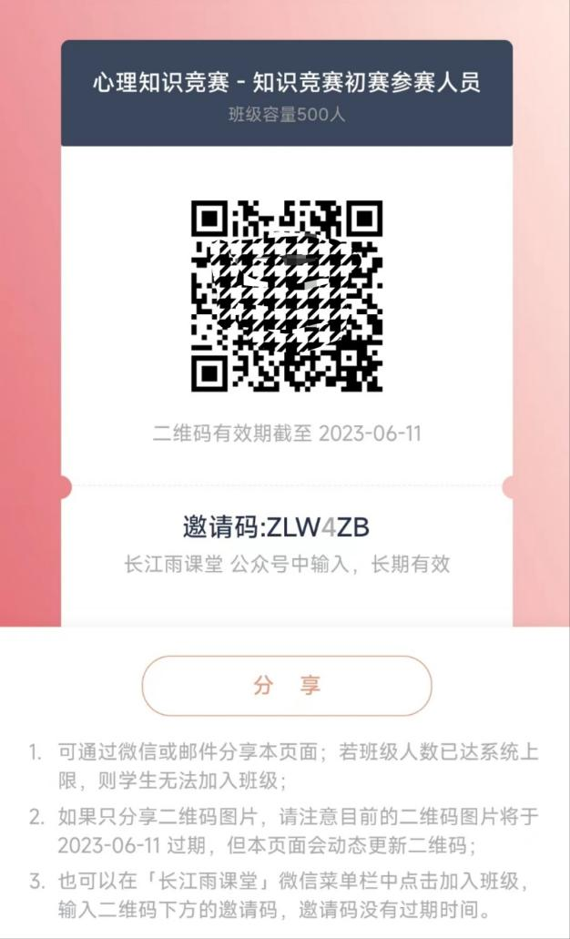 为进一步加强我院学生心理健康水平,激发对心理知识的兴趣,发现自身心理弱点,意识到心理知识的重要性。5月15日,新疆大学第二十届心理健康教育月系列活动之心理知识竞赛商学院初赛在长江雨课堂举行,由研究生工作办公室张亚鹏老师组织。本次活动学院积极动员学生参与,通过线上发放试卷的形式开展初选。此次试卷发布于14点20分,开始作答时间为14点30分,时长45分钟。题型分为单选、多选、判断、和填空,共计130分。