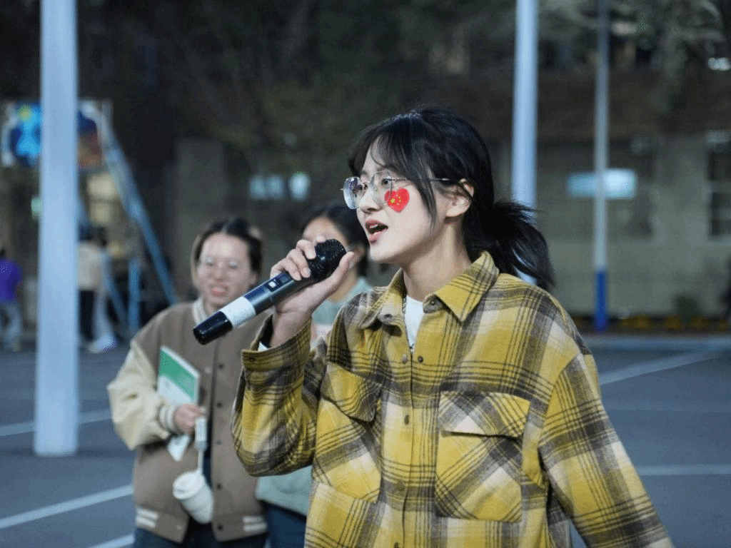 随着活动的开场,在场的老师们和同学们迅速调整状态。当音乐响起,他们逐一深情地开嗓,那歌声如同灵动的音符在篮球场上跳跃。从悠扬的古典曲目到激昂的现代乐章,每一首歌都被他们演绎得淋漓尽致。他们的歌声不仅展现了高超的演唱技巧,更传递出积极向上的精神风貌。