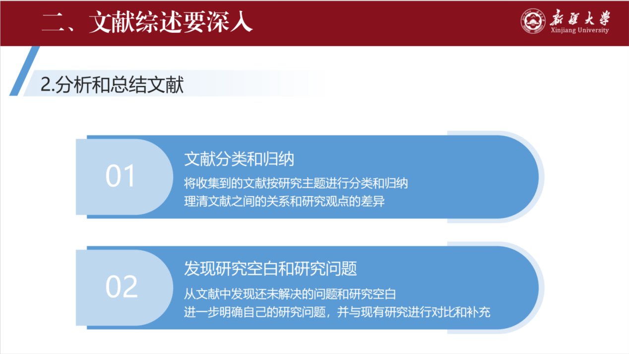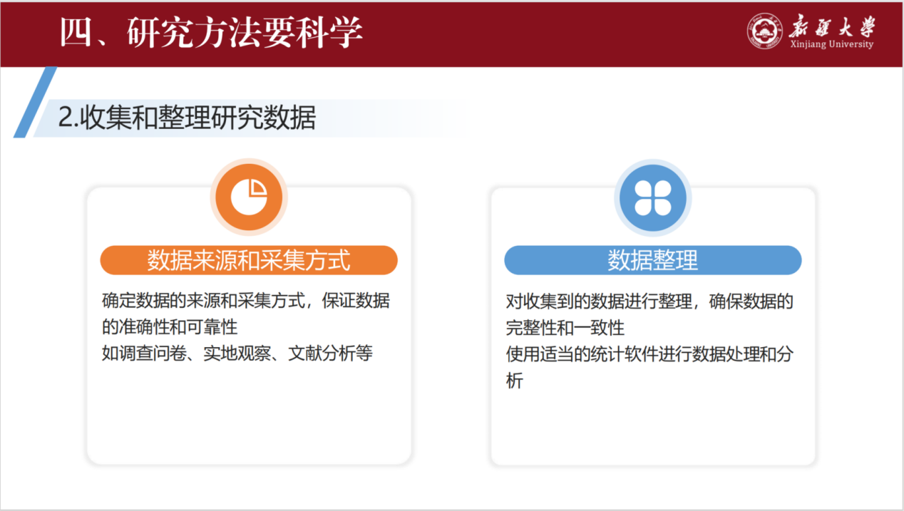 其次,雷同学建议同学们在撰写文献综述时要深入收集、分析并总结相关文献,充分利用图书馆资源和学术数据库来分类归纳文献,从而根据研究空白明确自己论文的研究问题。接着,若要确定清晰的研究问题,则需要设定具体的研究目标,分析研究的背景、动机和贡献,进而提出研究的核心问题和解决方案,以确定论文题目。如何保证研究方法的科学性是撰写学位论文的重中之重,雷同学建议同学们在选择适合的研究方法之后,需最好研究数据的收集整理和描述分析工作,才能呈现出预期假设的结果。