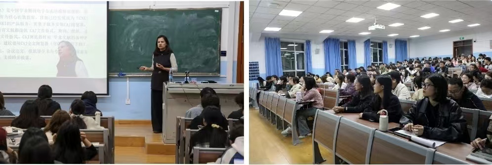 讲座伊始,吐尔干乃义·吐尔逊老师详细介绍了信息检索的多种方法,包括关键词检索、主题检索、高级检索等,旨在帮助同学们构建系统的信息检索框架。随后,她向同学们介绍了国内外多个知名的中外文数据库,并演示了高效检索文献的技巧,致力于助力同学们拓宽学术信息的检索渠道,提高检索效率。