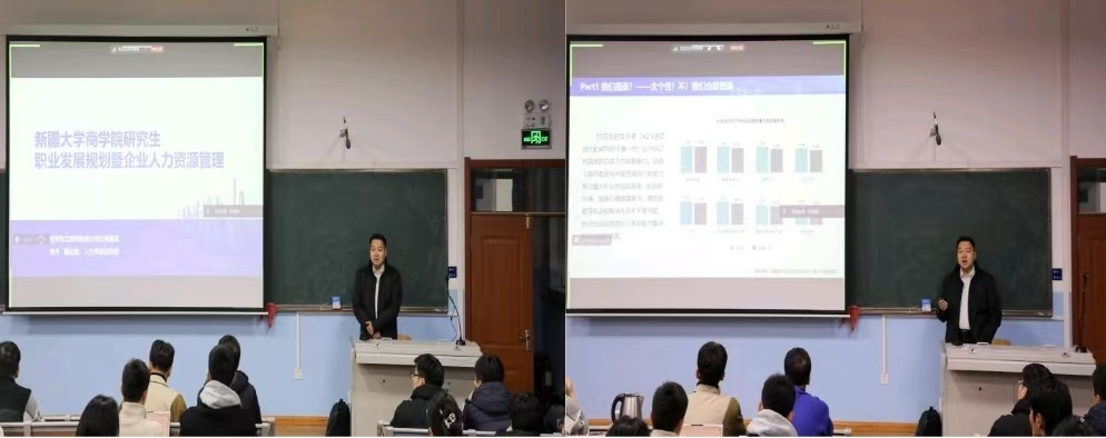 为增强大学生的职业规划能力,完善职业规划教育课程体系,培育学生具备理性的职业规划素养,新疆大学商学院于11月12日20时在友好校区第三阶梯教室开展第23期“新商讲坛”学术交流分享活动。此次活动特邀特变电工副总裁李丹博士作为主讲嘉宾,商学院副院长宋凌峰教授担任主持,商学院全体辅导员、班主任以及300余名学生热情参与了此次讲座。