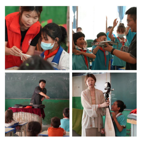 因时间限制,支教团主要从第二课堂(文体活动)入手,把学生们喜闻乐见的各类趣味课带入校园:合唱、舞蹈、绘画、无人机实操、琵琶演奏、乒乓球、手工等。在五天的支教活动中,依力亚尔·阿吉木老师与陈璐老师作为活动“先锋军”充当主持人,介绍支教团的成员并活跃课堂气氛;张亚鹏老师带领学生们开启了合唱之旅;王也同学向学生们介绍了无人机各部件并展示基础操作;孙潇锦同学展示了琵琶演奏方法并进行入门教学;龚梓萌同学进行了乒乓球基础培训,后将教学用的乒乓球拍赠与14村小学的学生们并鼓励他们继续热爱运动;单韫仪、蔡润锦、杜雨森、秦金凤四名同学开展了趣味折纸、双人舞课程;学生们反响激烈,师生情谊深厚。宁双双同学担任活动的拍摄工作,用镜头记录了支教的全过程。在支教活动进行的同时,“草根支教”团队与14村小学的校领导积极沟通,深入了解乡村教育的真实状况。6月24日,支教团队返回乌鲁木齐。