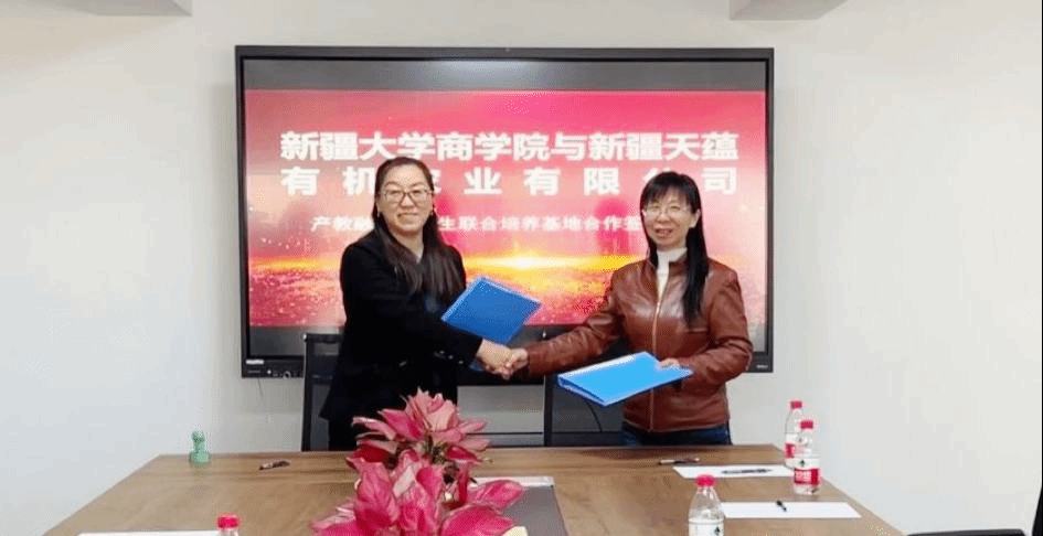 最后,双方表示,新疆大学商学院与新疆天蕴有机农业有限公司将深度合作,资源共享,发挥各自优势共同建设好产学融合研究生联合培养基地,形成产学研密切合作的研究生培养模式,创新高层次应用型人才培养机制,提升专业学位研究生培养质量,促进科技成果转化,发挥研究成果的经济、社会效益,实现高校与企业的合作共赢,为新疆地区经济社会发展做出应有的贡献。