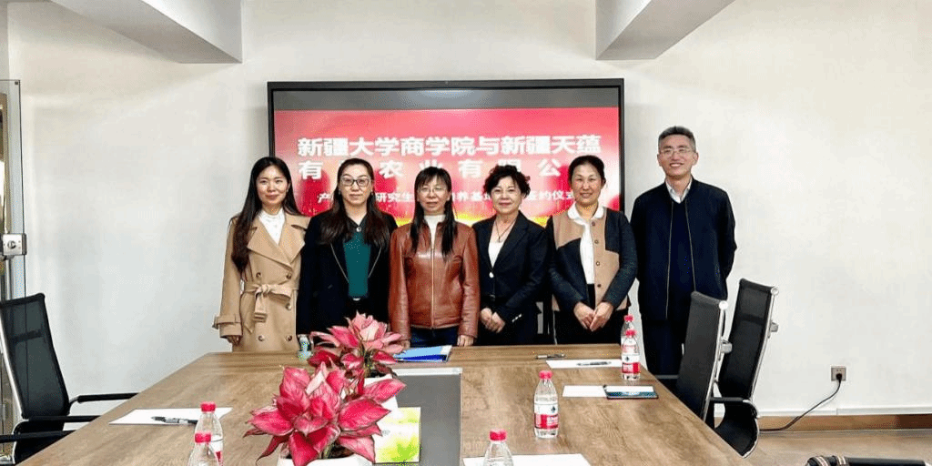 2023年10月9日,新疆大学商学院与新疆天蕴有机农业有限公司共同举行了“研究生联合培养基地合作协议签订仪式”。商学院党委副书记、院长吕雁琴,副院长宋凌峰,教授代表李莉,学位办主任陈娜等一行4人到新疆天蕴的乌鲁木齐总部,新疆天蕴有机农业有限公司总经理姚丁香等接待了吕院长一行。