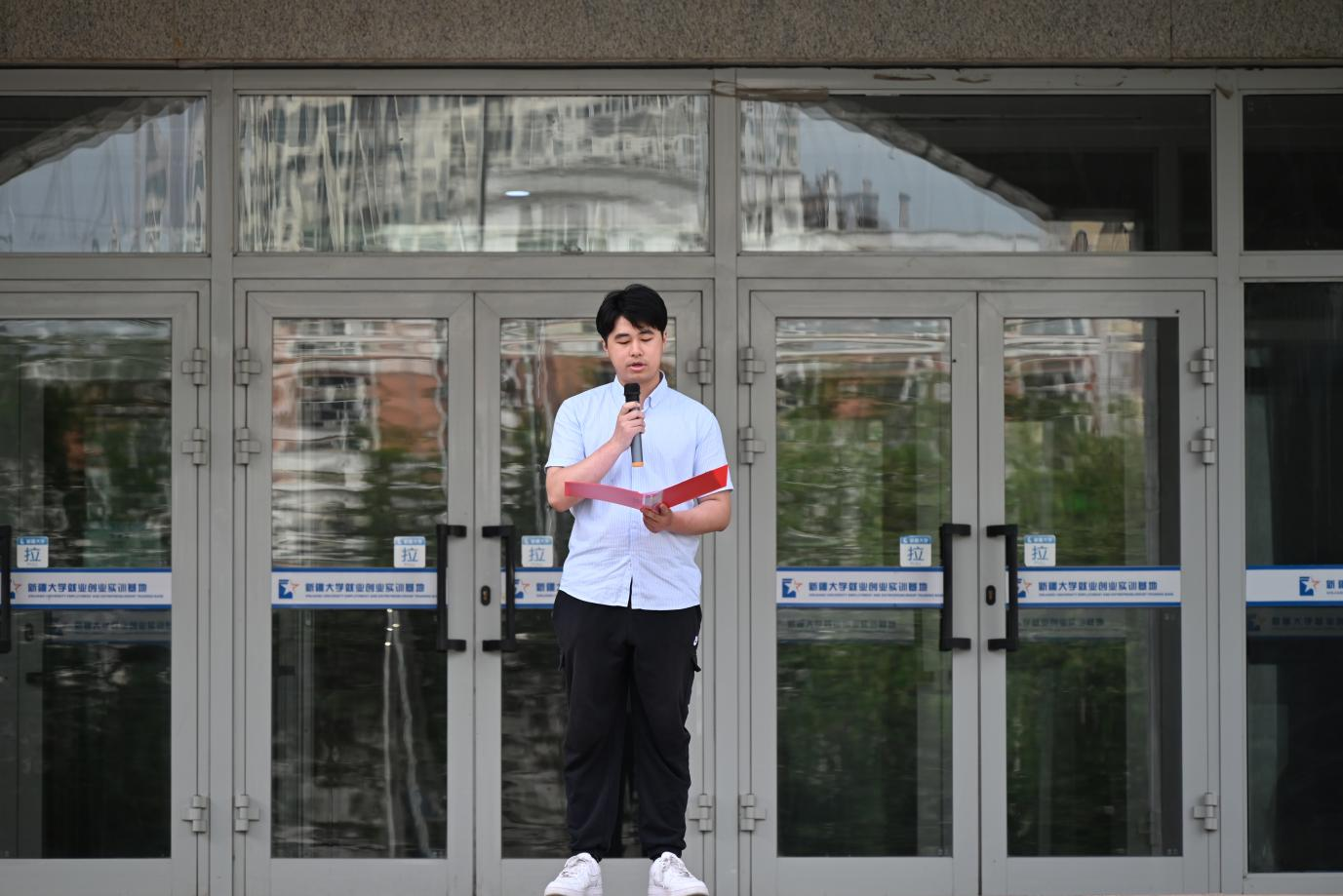 毕业生代表2021级工业工程与管理专业何明帛同学在国旗下发言。他对新疆大学百年华诞表示祝愿,对学校老师们的教育培养表示衷心的感谢。即将步入社会,他表示将会以母校为荣,传承红色基因,用实际行动践行社会主义核心价值观,贡献祖国,共创辉煌。