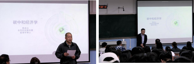 为积极响应国家“碳达峰、碳中和”重大战略部署,推进绿色低碳发展进程,增强商院学子对“双碳”目标的理解与思考,将“双碳”理念融入商业管理与实践,10月12日17时30分,商学院于友好校区第一阶梯教室举行第20期“新商讲坛”学术交流分享活动。本次讲座特别邀请金风科技集团副总裁高金山博士主讲,商学院党委副书记、纪委书记潘勇承主持,宋凌峰副院长和刘书庆教授参加,商学院数百名研究生聆听学习。