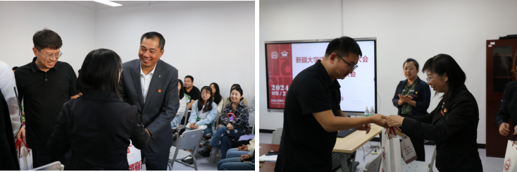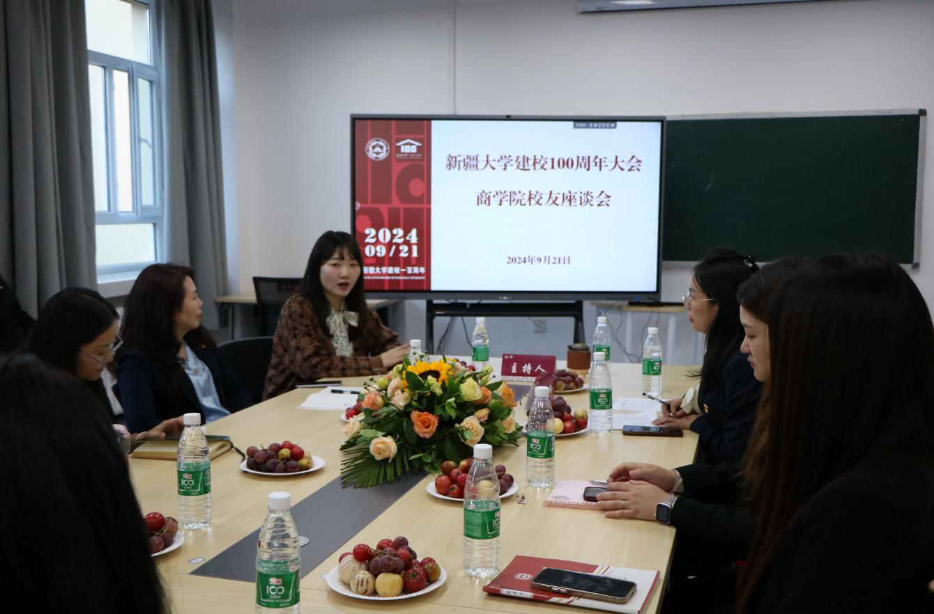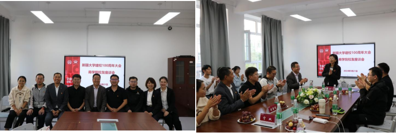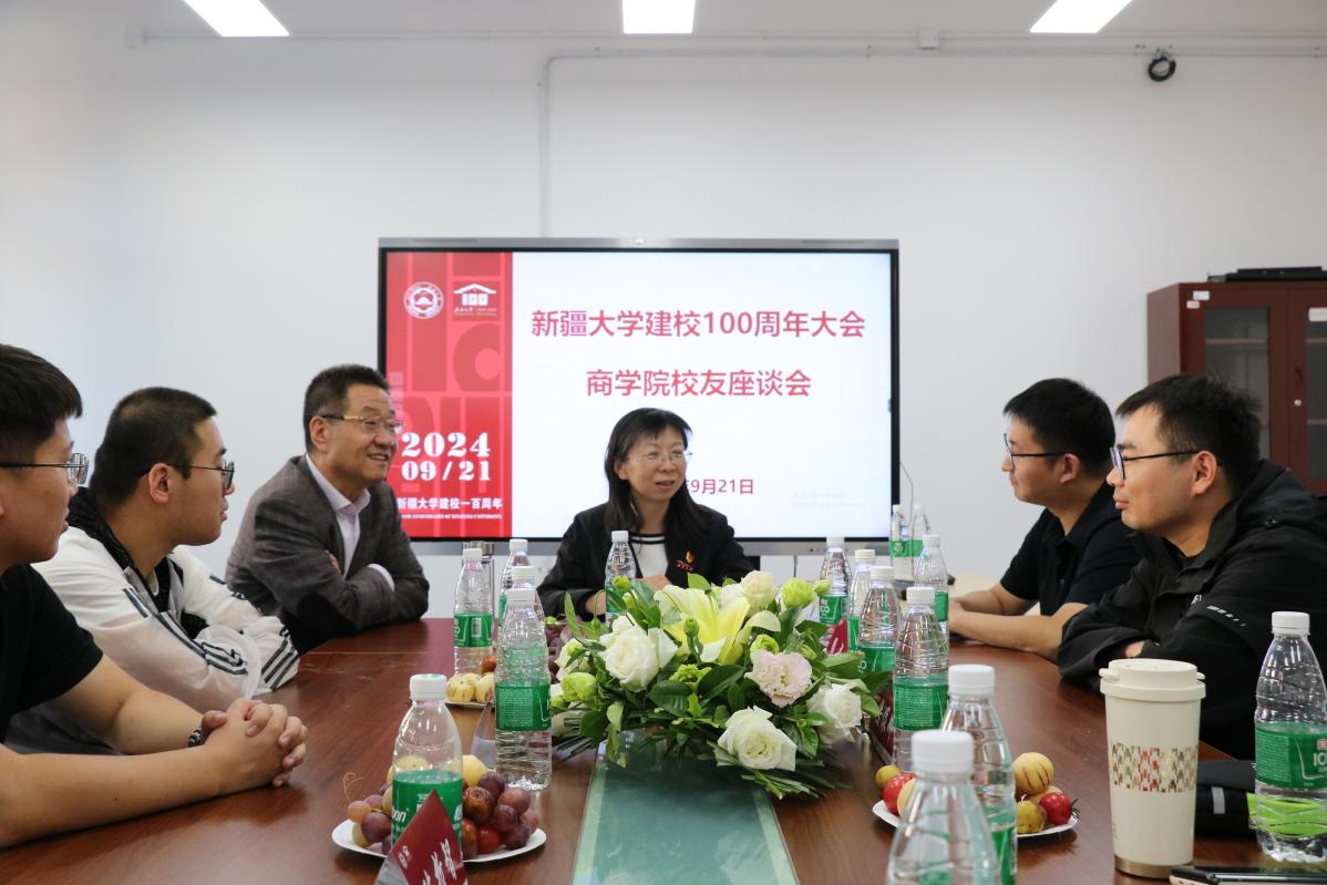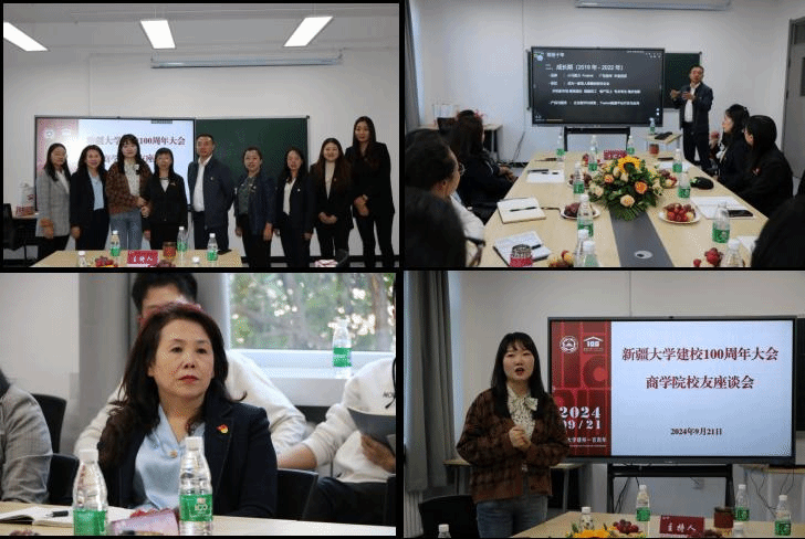 在百年校庆之际,为增进校友与母校的沟通交流,充分发挥优秀校友对商院学生成长的榜样示范和育人作用,2024年9月21日下午,商学院邀请参加百年校庆校友在友好校区开展分享会和座谈交流。活动按专业共分为工商管理、工程管理、旅游管理和会计四个会场,分别邀请了商学院2020级会计专业卡迪丽亚·艾尔肯、2020级旅游管理专业罗乾恺、2021级工商管理专业刘宏斌及2020级工程管理专业陈立诚等多位优秀校友到场。学院在家教职工、2024级研一新生代表和各专业校友汇聚一堂,共贺新大百年,互学互进促提升。吕雁琴院长向返校校友赠送百年校庆文创纪念品。