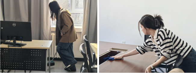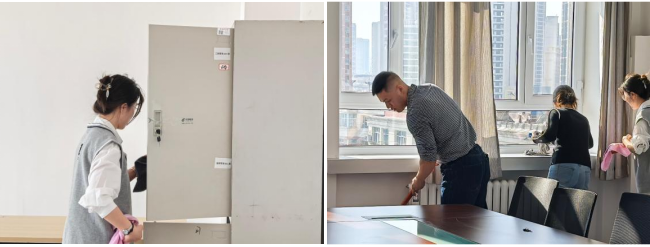 志愿者们抵达活动地点后,便迅速投入工作,他们分工明确,配合默契,有序展开清扫行动。有的手持扫帚、拖把,小心避开地面线路,认真清扫地面垃圾,仔细清理边角缝隙的污垢与灰尘,确保没有遗漏任何卫生死角。从桌面到键盘,从显示器到机箱,从窗户到门柜,他们用抹布逐一擦拭,细致清除每一处污渍。任务繁重,但志愿者们斗志昂扬,不怕脏、不怕累。经过几个小时的努力,志愿者们用双手与汗水让25间案例室和机房焕然一新,充分展现了新时代青年不怕吃苦、勇于担当的精神风貌。