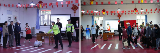 在节奏感十足的《十道黑》贯口表演后,活动进入情景模拟环节。现场精心打造了马路模拟场景,通过“场景还原+角色扮演”的方式,为老年人带来沉浸式的交通安全体验。