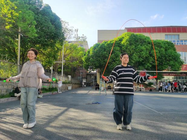 跳绳比赛分为个人组和团体组两个部分,以有效摇绳次数为选手成绩。比赛现场的观众们热情高涨,加油声和欢呼声此起彼伏,为参赛选手们加油鼓劲。每一次绳子的跃动都伴随着观众们的掌声,为比赛增添了紧张刺激的氛围。选手们精神饱满,展现出了出色的跳绳技巧和团队协作能力。