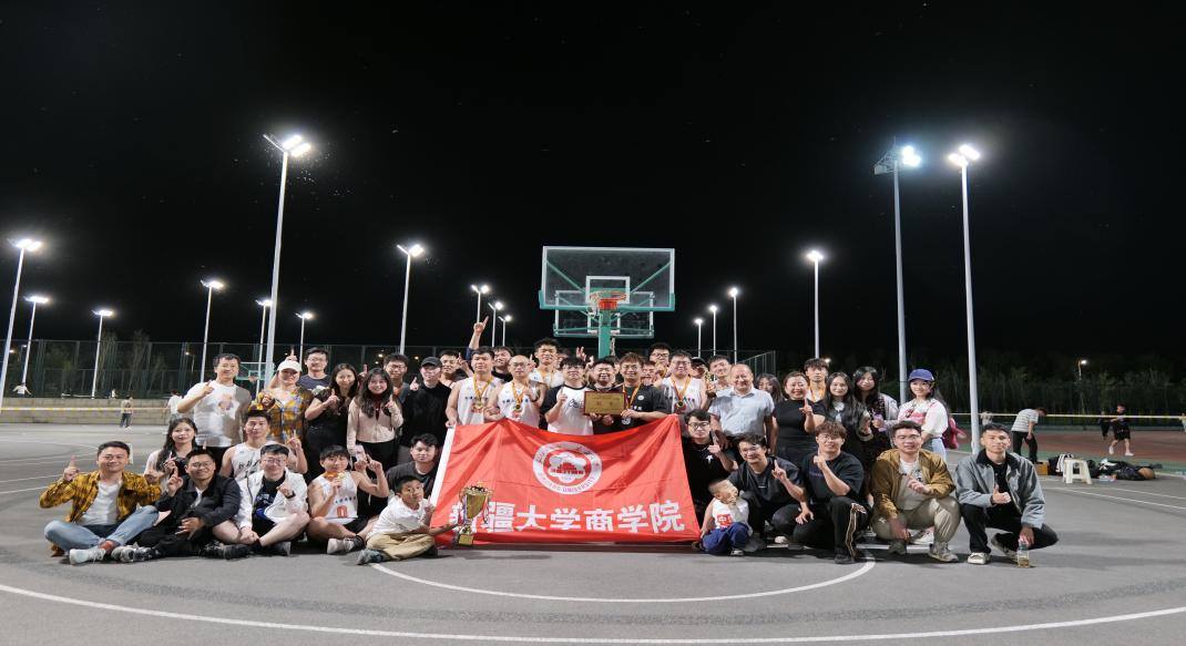 5月24日,由共青团新疆大学委员会和新疆大学体育教学研究部联合主办,新疆大学研究生会、新疆大学学生会共同承办的“逐梦新时代 健康强中国”5v5篮球联赛圆满闭幕,商学院荣获新疆大学5v5篮球联赛(研究生组)冠军。商学院党委书记叶小勇老师,综合办主任、班主任黄瑞老师、辅导员李多露老师在现场为参赛队员加油打气。